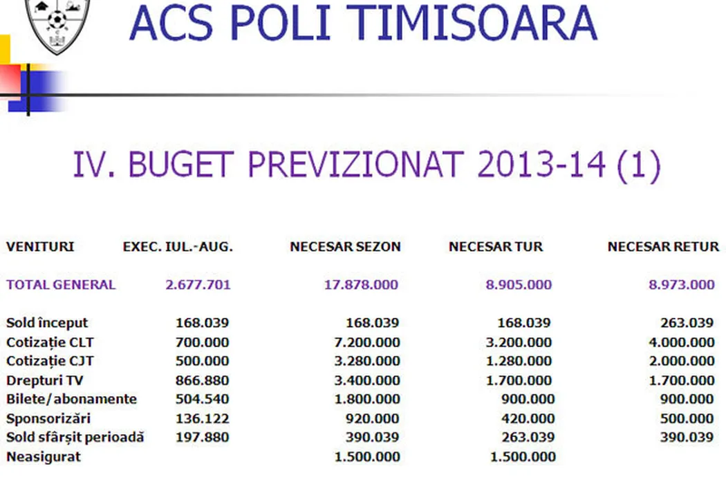 ACS Poli Timișoara și-a stabilit bugetul pentru acest sezon! Cifra este destul de mare pentru o echipă de Liga I