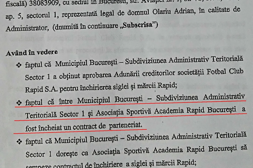 ACTE | Contractul Academiei Rapid cu Primaria Sectorului 1, invocat la închirierea mărcii FC Rapid, nu există. Edilul a semnat, totuși, dar cu Redivivusul generalului Mălureanu, în calitate de „lider de asociație”