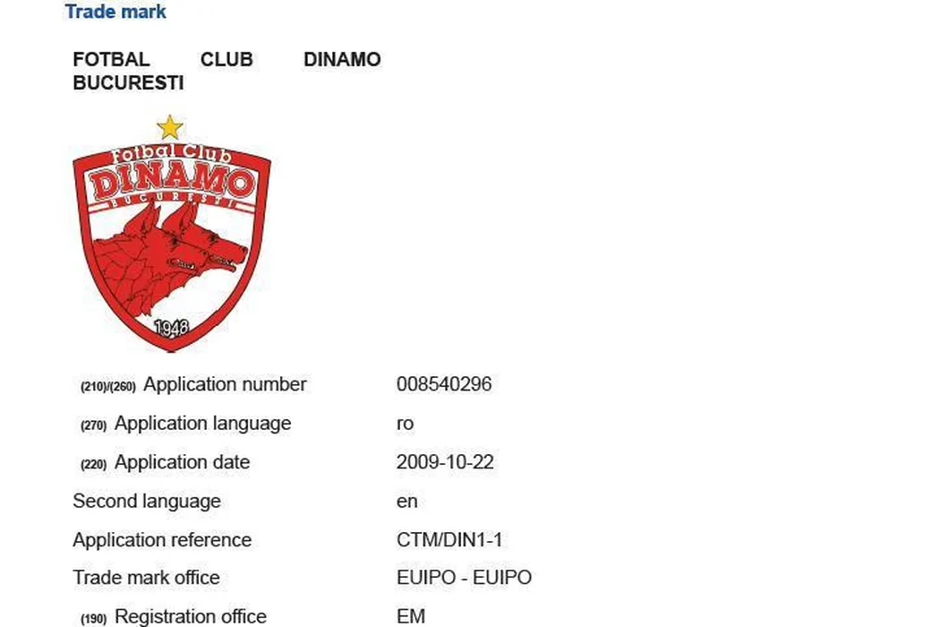 ACTE | Dovada că FC Dinamo îi aparține lui Nicolae Badea, care și-a înscris echipa în Liga 4. Marca este protejată până în 2019. Negoiță a avut doar „drept de folosință”, dar a fost somat deja să nu o mai utilizeze în scop comercial