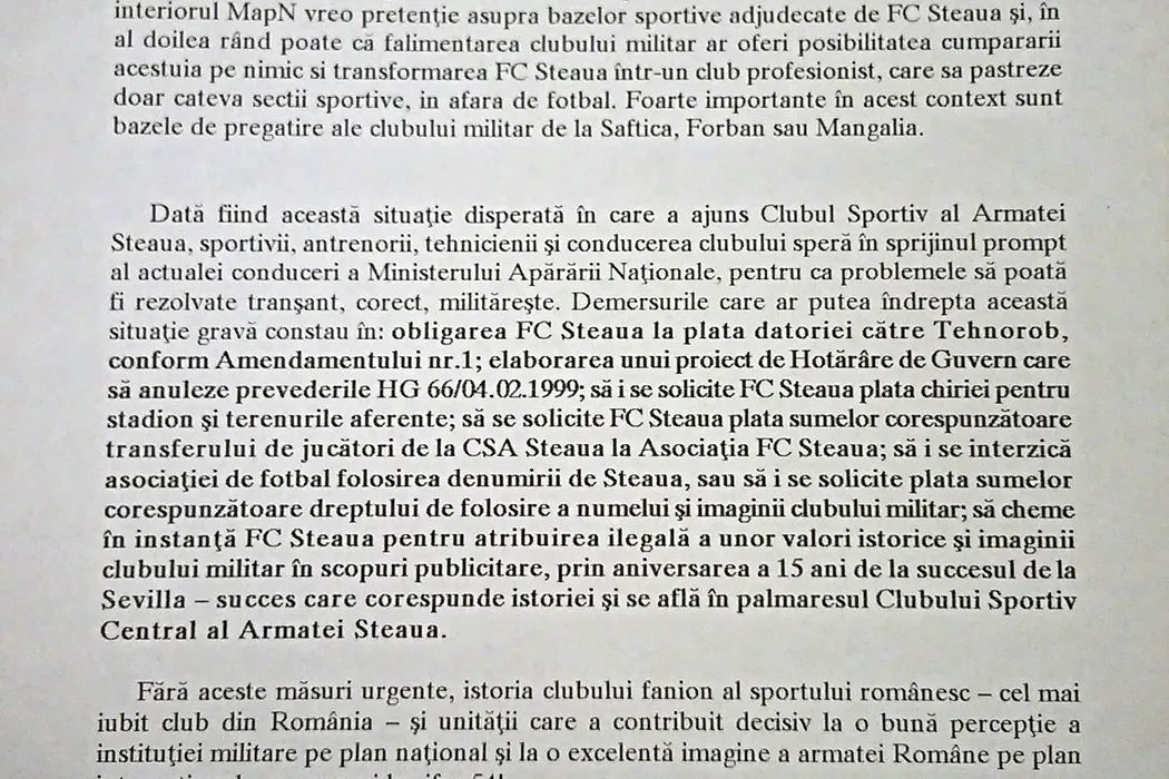 ACTE | Raportul interzis: trădătorii din Armata română. Comandantul CSA anunța șefii MApN, în 2001, că afaceriști, politicieni și ofițeri complotează să fure echipa de fotbal. Generalul Roșu spune că s-a urmărit nimicirea totală a clubului Steaua: „Domnule, le-au dat tot!”