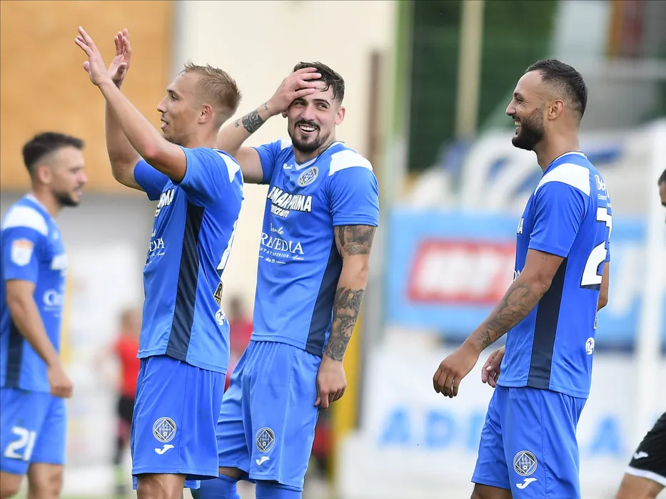 Bucurie a fotbalistilor din Clinceni cu Denis Ventura, Cristian Alexandru Albu si Florin Bejan dupa meciul de fotbal dintre Academica Clinceni si CSM Politehnica Iasi, contand pentru play-out-ul Ligii 1 Casa Pariurilor, disputat pe Clinceni Arena din Clinceni, duminica 26 iulie 2020. © FOTO:Razvan Pasarica/SPORT PICTURES