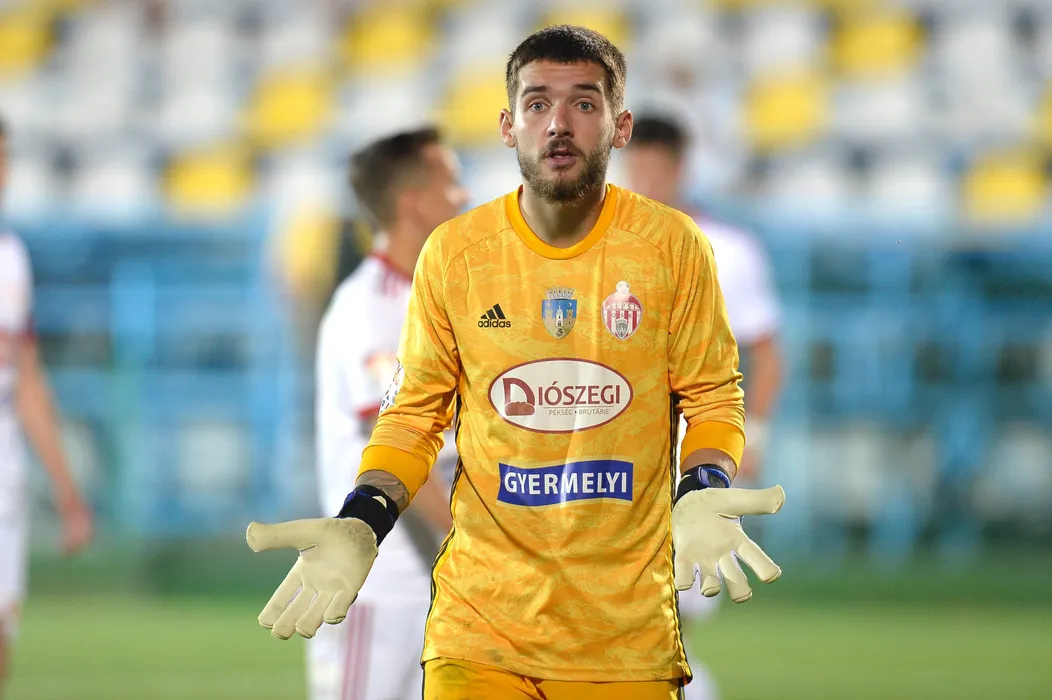 Portarul Roland Niczuly reactioneaza in timpul meciului de fotbal dintre FC Voluntari (echipament albastru) si Sepsi OSK (echipament alb) din etapa a XI-a a play-out-ului Ligii 1, disputat pe stadionul Anghel Iordanescu din Voluntari, duminica, 26 iulie 2020. EDUARD VINATORU/ MEDIAFAX FOTO
