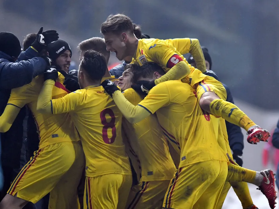 Bucurie romaneasca cu Vlad Dragomir in meciul de fotbal dintre reprezentativele U19 ale Romaniei si Serbiei, in cadrul Turneului de Elita, desfasurat pe Stadionul Ilie Oana din Ploiesti, miercuri 21 martie 2018. © FOTO Razvan Pasarica/SPORT PICTURES