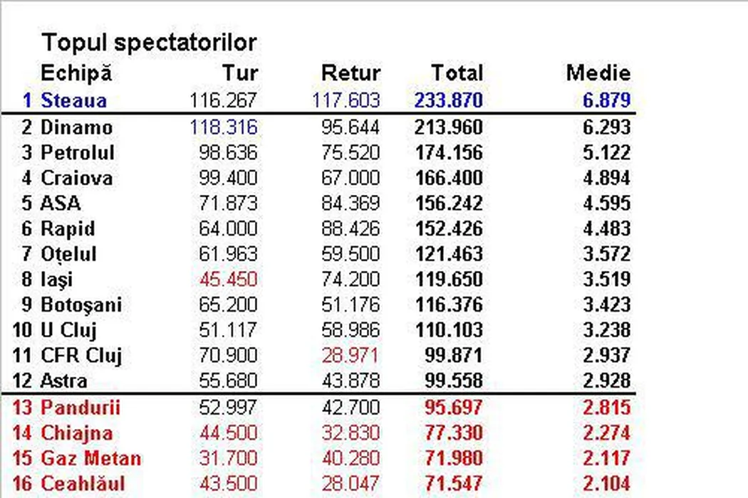 ADEVĂ‚RUL CIFRELOR | Steaua și Dinamo rămân de departe echipele cu cei mai mulți suporteri. După audiență, Rapid, Oțelul și „U” meritau să se salveze. Câte mari orașe lipsesc din Liga 1 în sezonul viitor