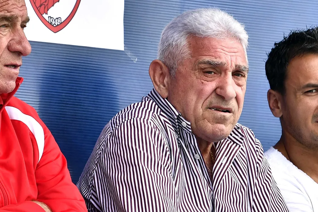 Ionel Augustin si Ioan Giovani Becali in tribuna la meciul de fotbal dintre Dinamo Bucuresti si Viitorul Constanta, in cadrul finalei Ligii Elitelor U 19, disputat pe stadionul Juventus din Bucuresti, sambata 3 iunie 2017. Razvan Pasarica/SPORT PICTURES