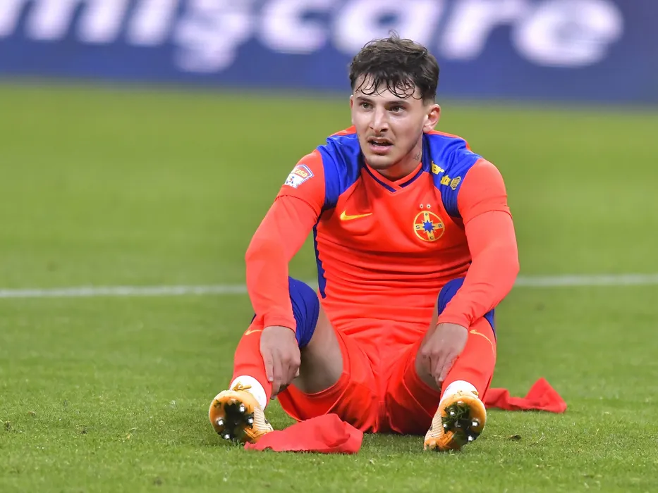 Ianis Ilie Stoica la pamant in meciul de fotbal dintre FCSB si FC Botosani, contand pentru Liga 1 Casa Pariurilor, desfasurat pe Arena Nationala din Bucuresti, duminica 21 noiembrie 2021. © FOTO:Razvan Pasarica/SPORT PICTURES