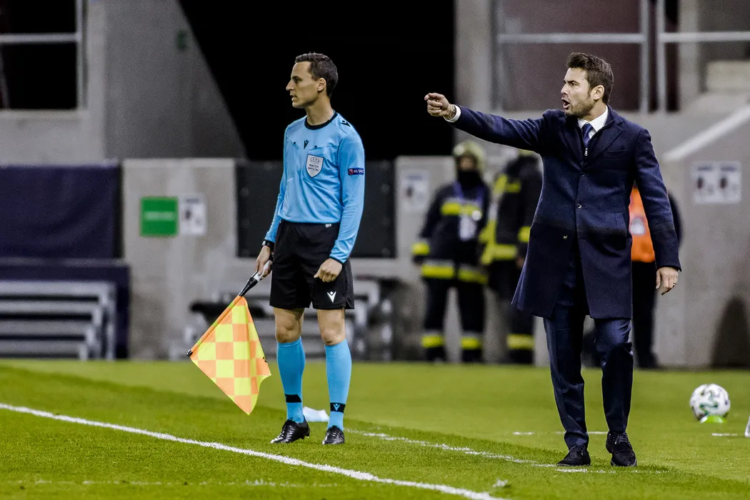 Adrian Mutu, selectionerul nationalei de fotbal a Romaniei U21, urmareste meciul Romania U21 - Germania U21 din ultima runda a grupelor de la Campionatul European de tineret, disputat pe stadionul Bozsik din Budapesta, marti, 30 martie 2021. VIORICA PANA / MEDIAFAX FOTO