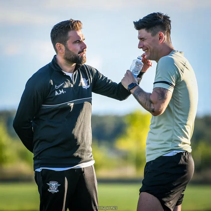 Adi Mutu și Cristi Săpunaru la antrenamentul susținut de Rapid după meciul cu FC U Craiova. Sursă foto: Facebook FC Rapid 1923