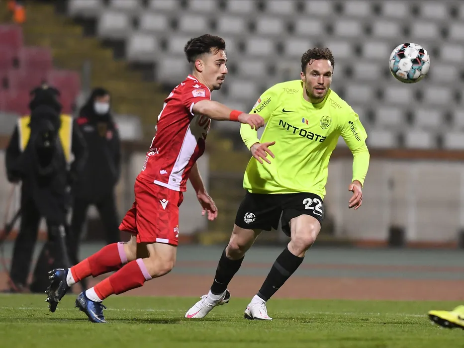 Aleix Garcia Serrano si Gabriel Debeljuh in meciul de fotbal dintre Dinamo Bucuresti si CFR Cluj, contand pentru Liga 1 Casa Pariurilor, desfasurat fara spectatori pe stadionul Dinamo din Bucuresti, joi 17 decembrie 2020. © FOTO:Razvan Pasarica/SPORT PICTURES