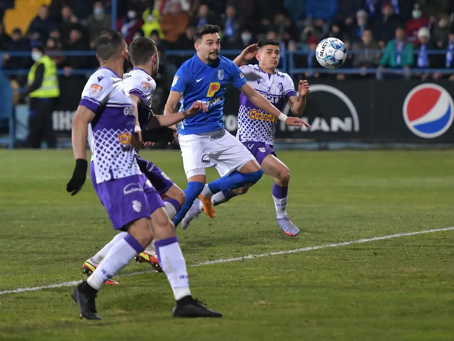 Adrian Petre Tabarcea si Costinel Andrei Tofan in meciul de fotbal dintre Farul Constanta si FC Arges, contand pentru Liga 1 Casa Pariurilor, desfasurat pe Stadionul central al Academiei Gheorghe Hagi din Ovidiu, luni 21 februarie 2022. © FOTO:Razvan Pasarica/SPORT PICTURES