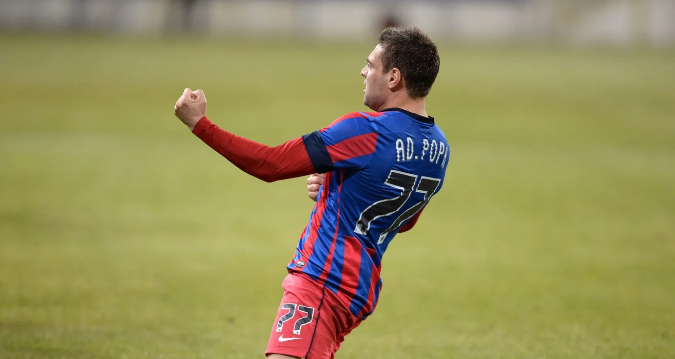 Adrian Popa, de la Steaua Bucuresti, se bucura dupa golul marcat in meciul cu Universitatea Cluj, restanta din etapa a XIV-a a Ligii I, disputat in Bucuresti, marti, 18 februarie 2014. ALEXANDRU HOJDA / MEDIAFAX FOTO