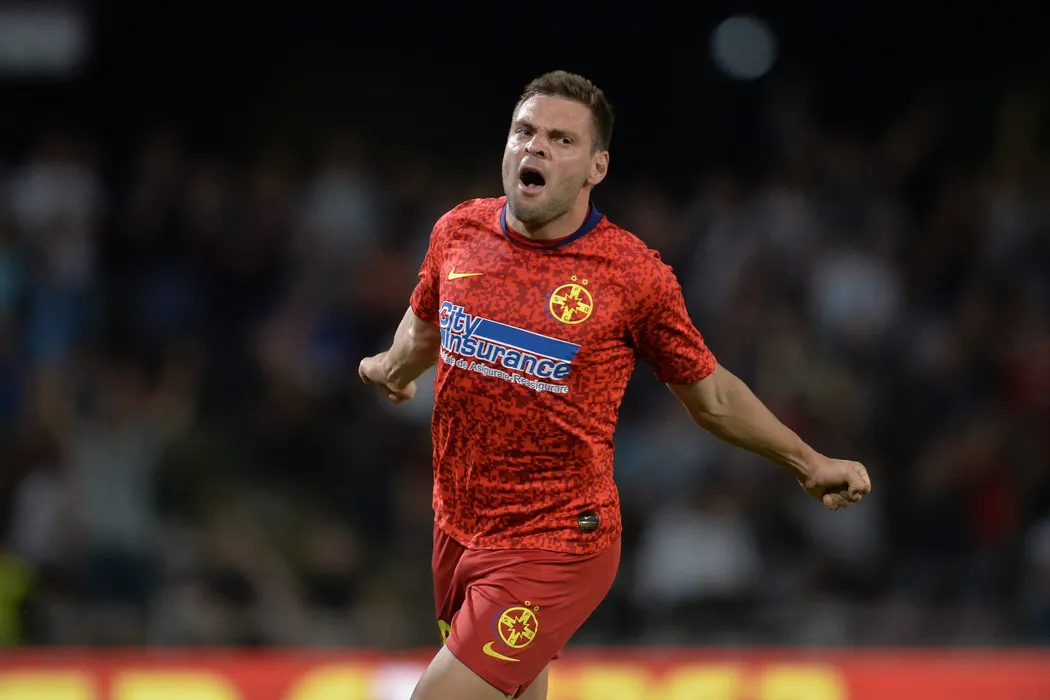 Adrian Popa, de la FCSB, reactioneaza dupa inscrierea unui gol in timpul meciului de fotbal contra echipei FC Viitorul din etapa a VIII-a a Ligii 1, desfasurat pe stadionul Nicolae Dobrin din Pitesti, duminica, 1 septembrie 2019. ALEXANDRU DOBRE / MEDIAFAX FOTO