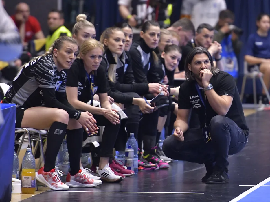 Adrian Vasile reactioneaza alaturi de banca bucuresteana in meciul de handbal feminin dintre CSM Bucuresti si Team Esbjerg, contand pentru Liga Campionilor, desfasurat in Sala Polivalenta-Ioan Kunst Ghermanescu din Bucuresti, duminica 1 mai 2022. © FOTO:Razvan Pasarica/SPORT PICTURES