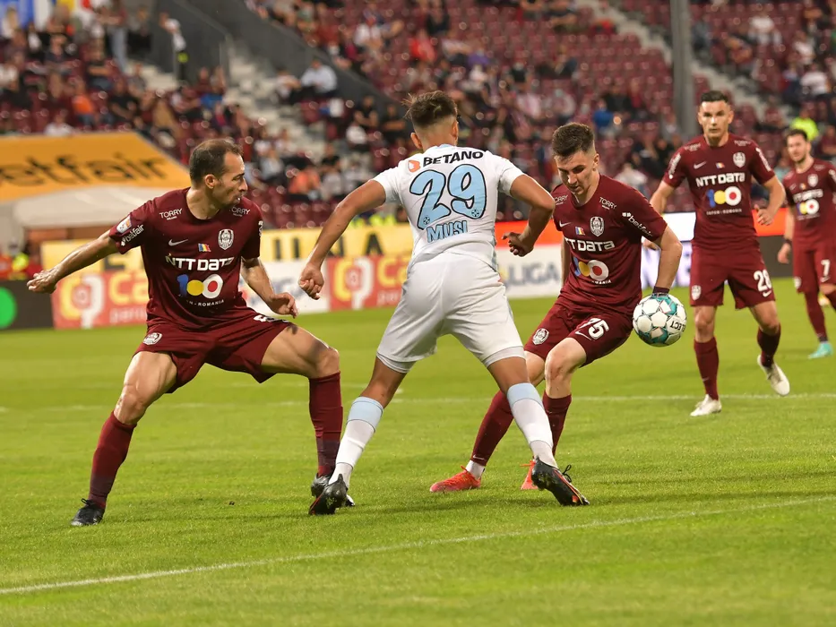 Paulo Vinicius De Souza Nascimento si Mihai Adrian Gidea in meciul de fotbal dintre CFR Cluj si FCSB, contand pentru Play-off-ul Ligii 1 Casa Pariurilor, desfasurat pe Stadionul Dr. Constantin Radulescu din Cluj Napoca, marti 25 mai 2021. © FOTO:Razvan Pasarica/SPORT PICTURES