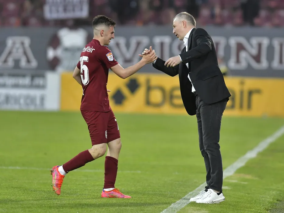 Edward Iordanescu il felicita pe Mihai Adrian Gidea dupa un gol reusit in meciul de fotbal dintre CFR Cluj si FCSB, contand pentru Play-off-ul Ligii 1 Casa Pariurilor, desfasurat pe Stadionul Dr. Constantin Radulescu din Cluj Napoca, marti 25 mai 2021. © FOTO:Razvan Pasarica/SPORT PICTURES