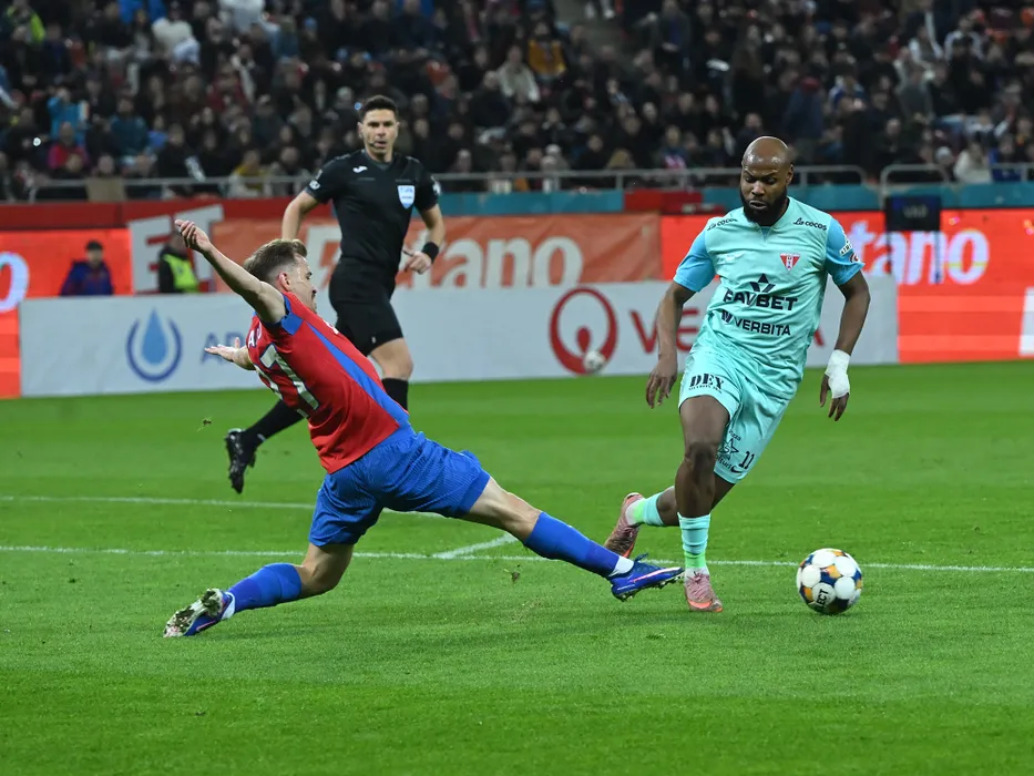 Darius Dumitru Olaru si Hakim Djamel Abdallah in meciul de fotbal dintre FCSB si UTA Arad, contand pentru Play out-ul Superligii Superbet, desfasurat pe Arena Nationala din Bucuresti, vineri 20 martie 2026. © FOTO:Razvan Pasarica/SPORT PICTURES