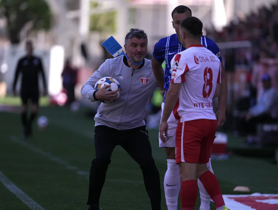 Adrian Mihalcea reactioneaza in disputa dintre Gustavo Henrique Marins Silva si Alin Roman in meciul de fotbal dintre UTA Arad si Farul Constanta, contand pentru Superliga Superbet Play-Out, desfasurat pe Arena Francisc Neuman din Arad, duminica 26 aprilie 2026. © FOTO:Alexandra Fechete/SPORT PICTURES
