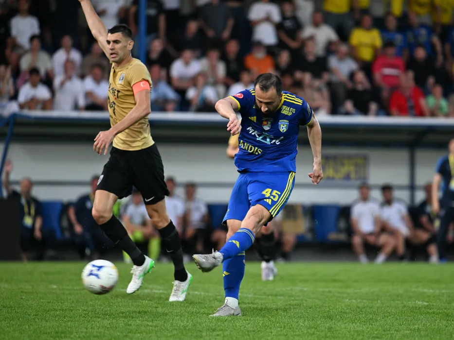 Arabuli Bachana marchează un gol in meciul de fotbal dintre Unirea Slobozia si FC Voluntari, barajul retur pentru mentinere/promovare in Superliga Superbet, desfasurat pe Clinceni Arena din Clinceni, luni 2 iunie 2025. © FOTO:Razvan Pasarica/SPORT PICTURES