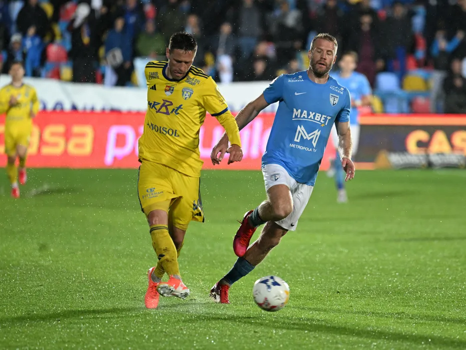 Dmytro Pospielov si Adam Nemec in meciul de fotbal dintre FC Voluntari si Unirea Slobozia, barajul tur de mentinere/promovare in Superliga Superbet, desfasurat pe Stadionul Anghel Iordanescu din Voluntari, luni 26 mai 2025. © FOTO:Razvan Pasarica/SPORT PICTURES