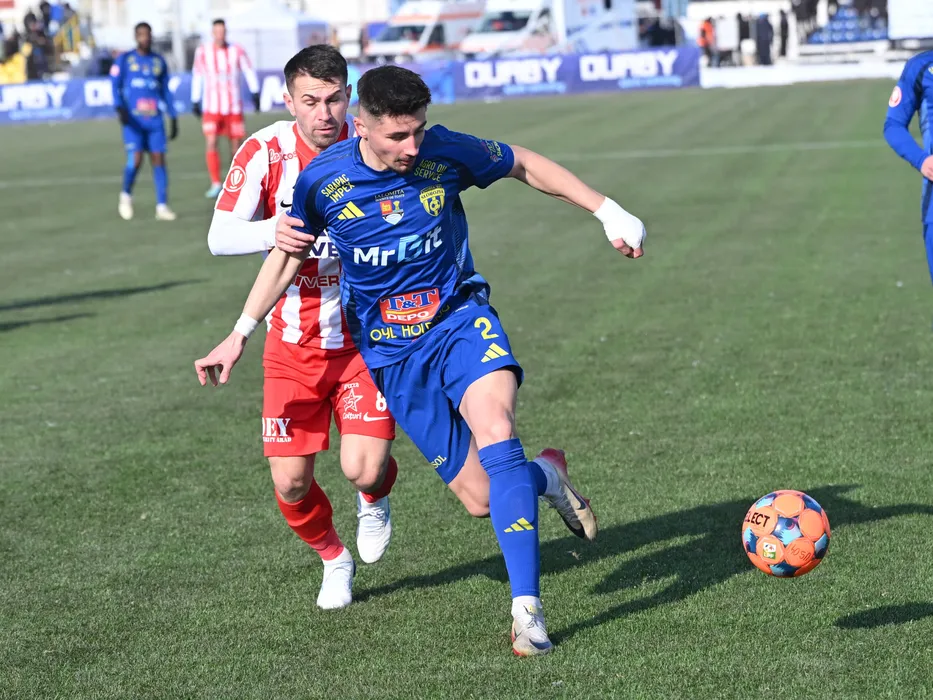 Alin Roman si Andrei Cristian Dorobantu in meciul dintre Unirea Slobozia si UTA Arad, contand pentru Superliga Superbet, desfasurat pe Stadionul 1 Mai din Slobozia, sambata 17 ianuarie 2026. © FOTO:Razvan Pasarica/SPORT PICTURES
