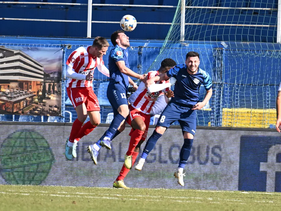 Denis Lucian Hrezdac, Andrei Sava si Florin Flavius Purece in meciul de fotbal dintre Metaloglobus Bucuresti si UTA Arad, contand pentru Superliga Superbet, desfasurat pe Clinceni Arena din Clinceni, sambata 7 martie 2026. © FOTO:Razvan Pasarica/SPORT PICTURES