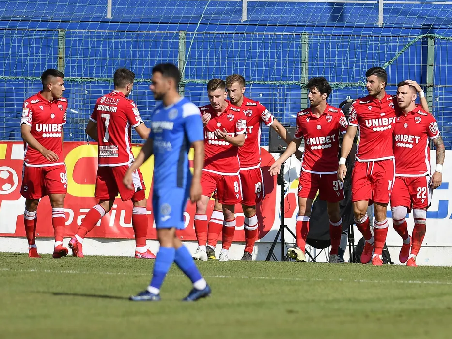 Bucurie a fotbalistilor dinamovisti cu Robert Marian Moldoveanu, Valentin Marius Lazar, Daniel Iliuta PopaDiego Fabbrini, Mihai Popescu si Deian Cristian Sorescu in meciul de fotbal dintre Academica Clinceni si Dinamo Bucuresti, contand pentru play-out-ul Ligii 1 Casa Pariurilor, disputat pe Clinceni Arena din Clinceni, duminica 5 iulie 2020. © FOTO:Razvan Pasarica/SPORT PICTURES