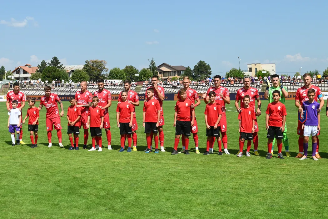 Fotbalistii targovisteni la startul meciului de fotbal dintre FC Arges si Chindia Targoviste, contand pentru Superliga Superbet, desfasurat pe Stadionul Nicolae Dobrin din Pitesti, duminica 28 august 2022. © FOTO:Razvan Pasarica/SPORT PICTURES