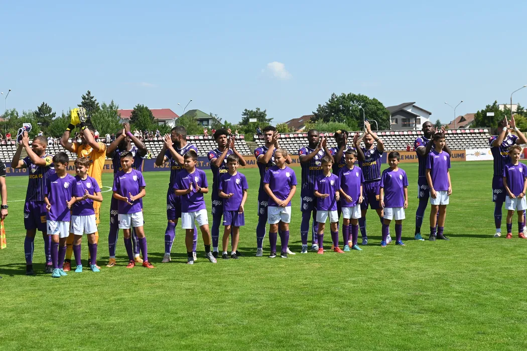 Fotbalistii argeseni la startul meciului de fotbal dintre FC Arges si Chindia Targoviste, contand pentru Superliga Superbet, desfasurat pe Stadionul Nicolae Dobrin din Pitesti, duminica 28 august 2022. © FOTO:Razvan Pasarica/SPORT PICTURES
