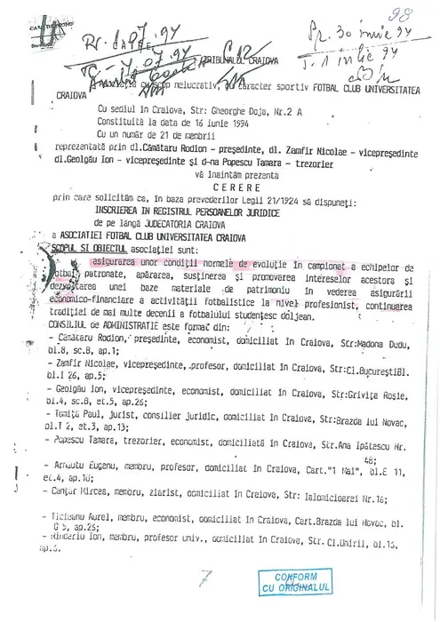 Adrian Mititelu a publicat documente incredibile care atestă, conform milionarului, că FC U este cu adevărat Universitatea Craiova!