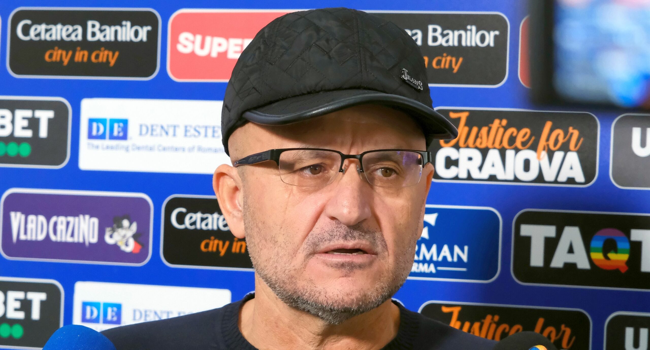 Adrian Mititelu patronul echipei de fotbal FC u Craiova 1948 sustine o conferinta de presa la sediul clubului din Craiova , luni 30 ianuarie 2023 . REMUS BADEA / MEDIAFAX FOTO