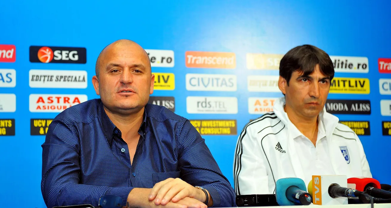 Adrian Mititelu (S) si Victor Piturca (D) sustin o conferinta de presa, in Craiova, joi, 23 septembrie 2010. REMUS BADEA / MEDIAFAX FOTO