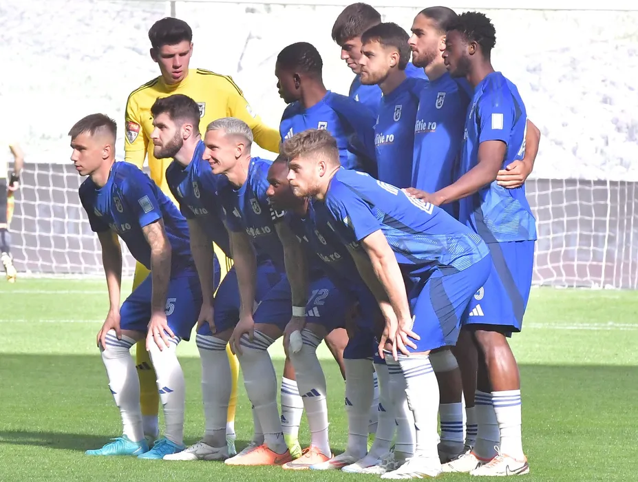 Fotbaliștii craioveni la o fotografie de grup realizată înaintea meciului de fotbal dintre FCU 1948 Craiova și ACSM Ceahlăul Piatra Neamț, contând pentru Liga 2 Casa Pariurilor, desfășurat pe Stadionul Ion Oblemenco din Craiova, sâmbătă 2 noiembrie 2024. © FOTO: Remus BADEA/SPORT PICTURES