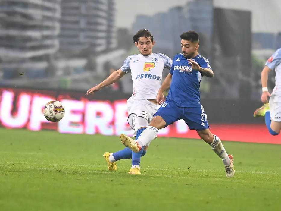 Alexi Paul Pitu si Radu Alexandru Negru in meciul de fotbal dintre FC U Craiova si Farul Constanta, contand pentru Superliga Superbet, desfasurat pe Stadionul Ion Oblemenco din Craiova, vineri 28 octombrie 2022. © FOTO:Razvan Pasarica/SPORT PICTURES