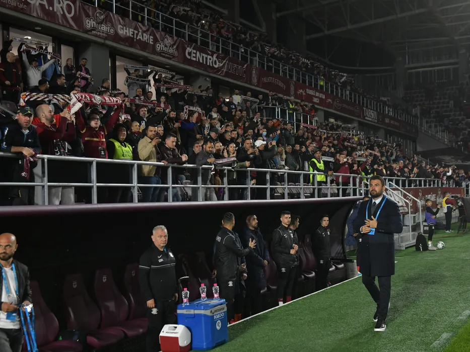 Adrian Mutu alaturi de tribuna rapidista la meciul de fotbal dintre Rapid Bucuresti si Sepsi OSK Sfantu Gheorghe, contand pentru Play out-ul Ligii 1 Casa Pariurilor, desfasurat pe Stadionul Rapid-Giulesti din Bucuresti, sambata 23 aprilie 2022. © FOTO:Razvan Pasarica/SPORT PICTURES