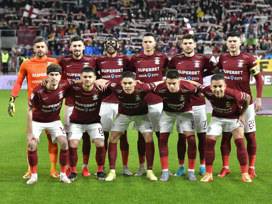Fotbalistii rapidisti la o fotografie de grup realizata inaintea meciului de fotbal dintre Rapid Bucuresti si FC Botosani, contand pentru Play-out-ul Ligii 1 Casa Pariurilor, desfasurat pe Stadionul Rapid Giulesti din Bucuresti, sambata 2 aprilie 2022. © FOTO:Razvan Pasarica/SPORT PICTURES