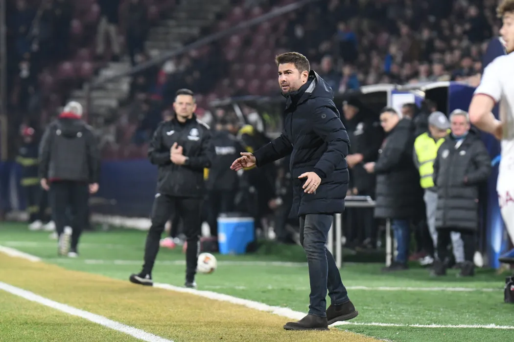 Adrian Mutu reacționând în meciul de fotbal dintre FC CFR 1907 Cluj si FC Rapid 1923, contând pentru Superliga Superbet, desfășurat pe Stadionul Dr.Constantin Rădulescu din Cluj-Napoca, sâmbătă 10 februarie 2024. © FOTO: Flaviu BUBOI/SPORT PICTURES