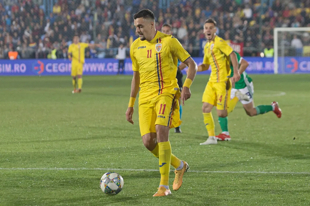 Adrian Petre, de la Romania U21, suteaza in meciul de fotbal contra selectionatei Irlandei de Nord U21 din preliminariile EURO 2021, disputat pe stadionul Anghel Iordanescu din Voluntari, luni, 14 octombrie 2019. ALEXANDRA PANDREA / MEDIAFAX FOTO
