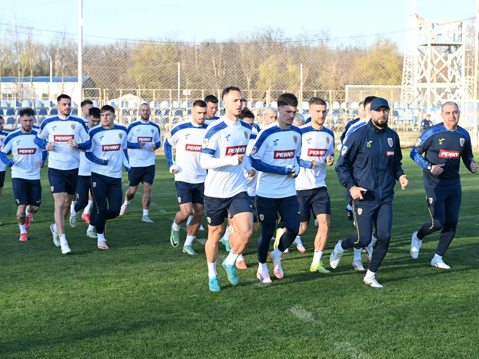 Fotbalistii romani Deian Sorescu, Andrei Burca, Andrei Rațiu, Denis Ciobotariu, Virgil Ghita, Dennis Man, Daniel Birligea alaturi de Ionel Tersinio Gane la un antrenament efectuat inaintea meciurilor impotriva Bosniei Hertegovina si San Marino, din cadrul Preliminariilor Campionatului Mondial 2026, desfasurat la Centrul National de Fotbal de la Mogosoaia, joi 20 martie 2025. © FOTO:Razvan Pasarica/SPORT PICTURES