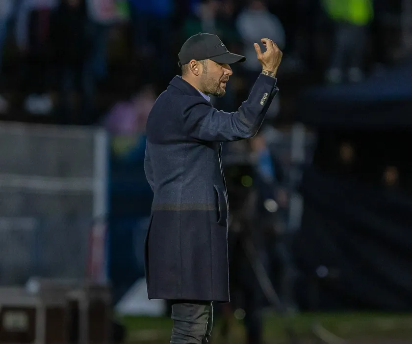 Adrian Mutu reacționând în meciul de fotbal dintre CS Corvinul 1921 Hunedoara și FC CFR 1907 Cluj, contând pentru Cupa României Betano - sferturi de finală, desfășurat pe Stadionul Michael Klein din Hunedoara, marți 2 aprilie 2024. © FOTO: Sebastian POPESCU/SPORT PICTURES