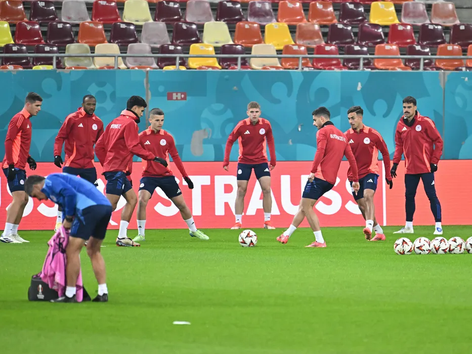 Jucatorii greci la antrenamentul oficial al celor de la FC Olympiacos Pireu de dinaintea meciului impotriva celor de la FCSB, desfasurat la Arena Nationala din Bucuresti, miercuri 27 noiembrie 2024. © FOTO:Razvan Pasarica/SPORT PICTURES