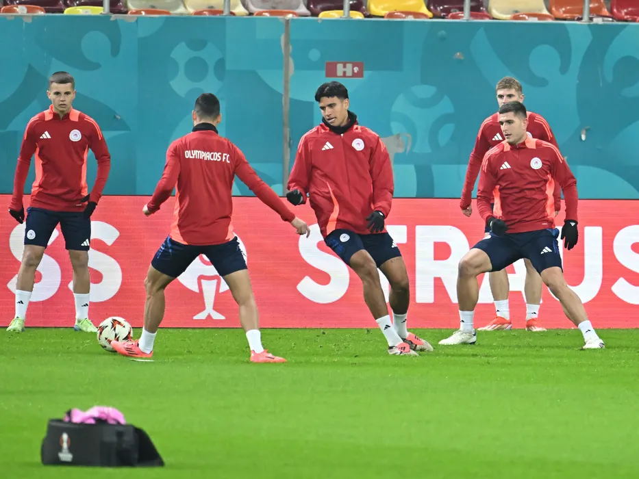 Jucatorii greci la antrenamentul oficial al celor de la FC Olympiacos Pireu de dinaintea meciului impotriva celor de la FCSB, desfasurat la Arena Nationala din Bucuresti, miercuri 27 noiembrie 2024. © FOTO:Razvan Pasarica/SPORT PICTURES
