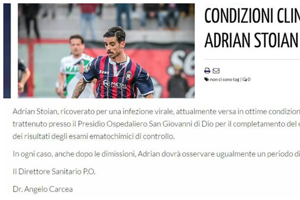 Adrian Stoian rămâne suporter de lux în finalul sezonului în Serie A. Se află în continuare în spital. Doctorul atacantului: „Starea lui e mai bună, dar va urma o perioadă de convalescență”