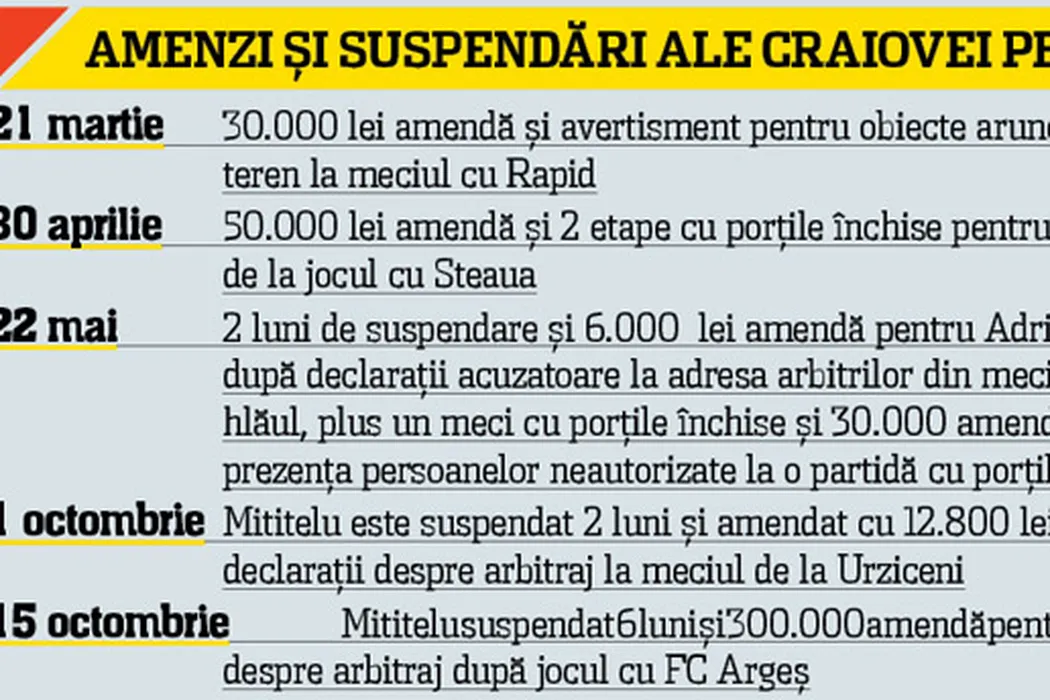 Adrian „Suspendelu”, campion la amenzi și suspendări