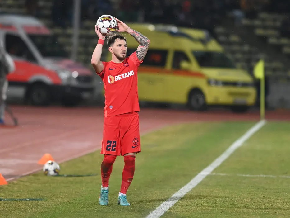 Deian Cristian Sorescu bate un out in meciul de fotbal dintre FC Arges si FCSB, contand pentru Superliga Superbet, desfasurat pe Stadionul Nicolae Dobrin din Pitesti, duminica 26 februarie 2023. © FOTO:Razvan Pasarica/SPORT PICTURES