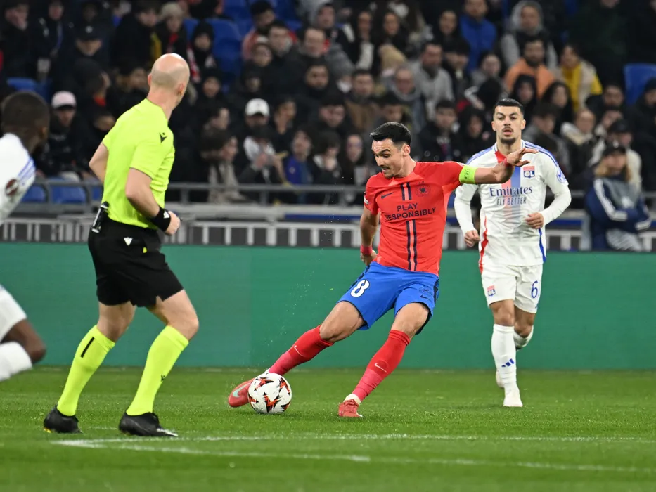 Adrian Gheorghe Șut in meciul de fotbal dintre Olympique Lyon si FCSB din cadrul UEFA Europa League, desfasurat pe Groupama Arena din Lyon, joi 13 martie 2025. © FOTO:Razvan Pasarica/SPORT PICTURES