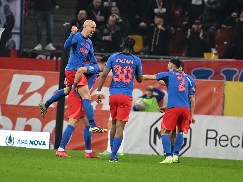 Adrian Gheorghe Șut se bucură dupa un gol marcat alături de Vlad Iulian Chiricheș in meciul de fotbal dintre FCSB si Universitatea Craiova, din cadrul Superligii Superbet, desfasurat pe Arena Nationala din Bucuresti, duminica 9 martie 2025. © FOTO:Razvan Pasarica/SPORT PICTURES