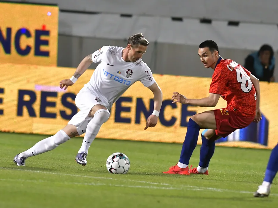 Ciprian Ioan Deac si Adrian Gheorghe Sut in meciul de fotbal dintre FCSB si CFR Cluj, contand pentru Play-off-ul Ligii 1 Casa Pariurilor, desfasurat fara spectatori pe Stadionul Marin Anastasovici din Giurgiu, luni 3 mai 2021. © FOTO:Razvan Pasarica/SPORT PICTURES
