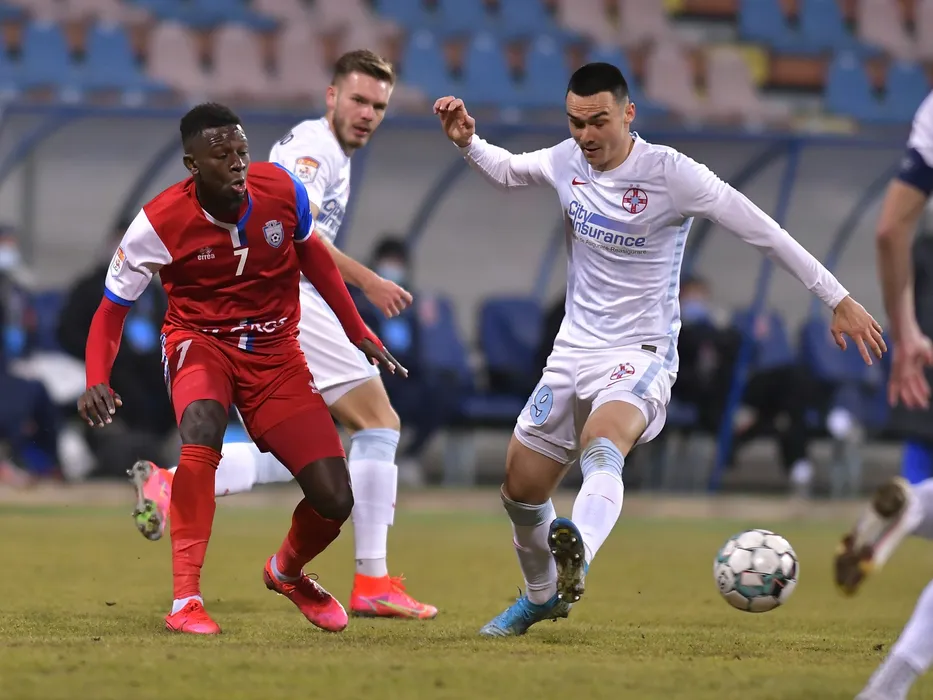 Hamidou Keyta si Adrian Gheorghe Sut in meciul de fotbal dintre FC Botosani si FCSB, contand pentru Liga 1 Casa Pariurilor, desfasurat fara spectatori pe Stadionul Municipal din Botosani, duminica 28 februarie 2021. © FOTO:Razvan Pasarica/SPORT PICTURES
