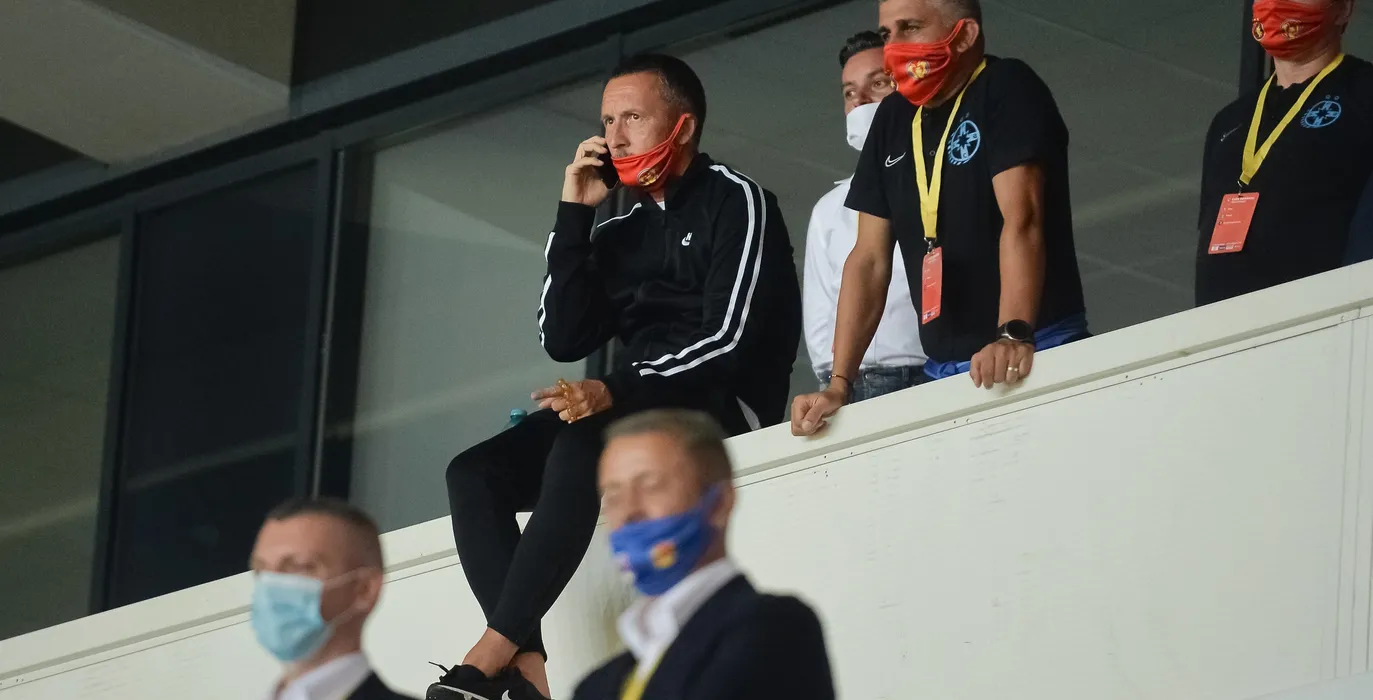 Mihai Stoica (S) urmareste festivitatea de premiere a formatiei FCSB la finalul meciului de fotbal contra echipei Sepsi OSK din finala Cupei Romaniei, disputat pe stadionul Ilie Oana din Ploiesti, miercuri, 22 iulie 2020. FCSB a cucerit Cupa Romaniei dupa ce a invins-o pe Sepsi, scor 1-0, in finala de la Ploiesti. Dennis Man a inscris unicul gol al partidei. ALEXANDRU DOBRE / MEDIAFAX FOTO