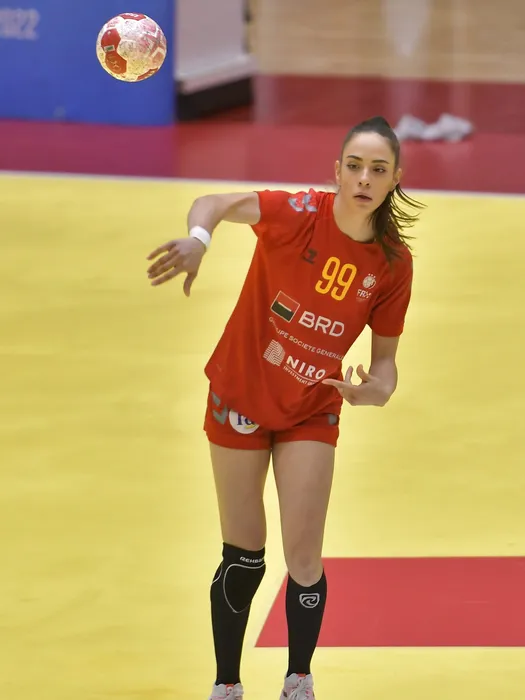 Sorina Maria Tirca in meciul de handbal feminin dintre Romania si Insulele Feroe, contand pentru Preliminariile CE 2022, desfasurat in Sala Sporturilor din Mioveni, miercuri 6 octombrie 2021. © FOTO:Razvan Pasarica/SPORT PICTURES